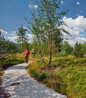 We propose that Downsview’s new communities include open spaces in parks, natural areas, along streets and even on buildings, combining nature with urban areas in a concept we call City Nature. This integrated approach supports biodiversity, manages stormwater using natural systems, and offers a range of outdoor experiences for those who live, work and play in and around Downsview. It will also provide space for people to walk and cycle, as we’re prioritizing people and not only cars.